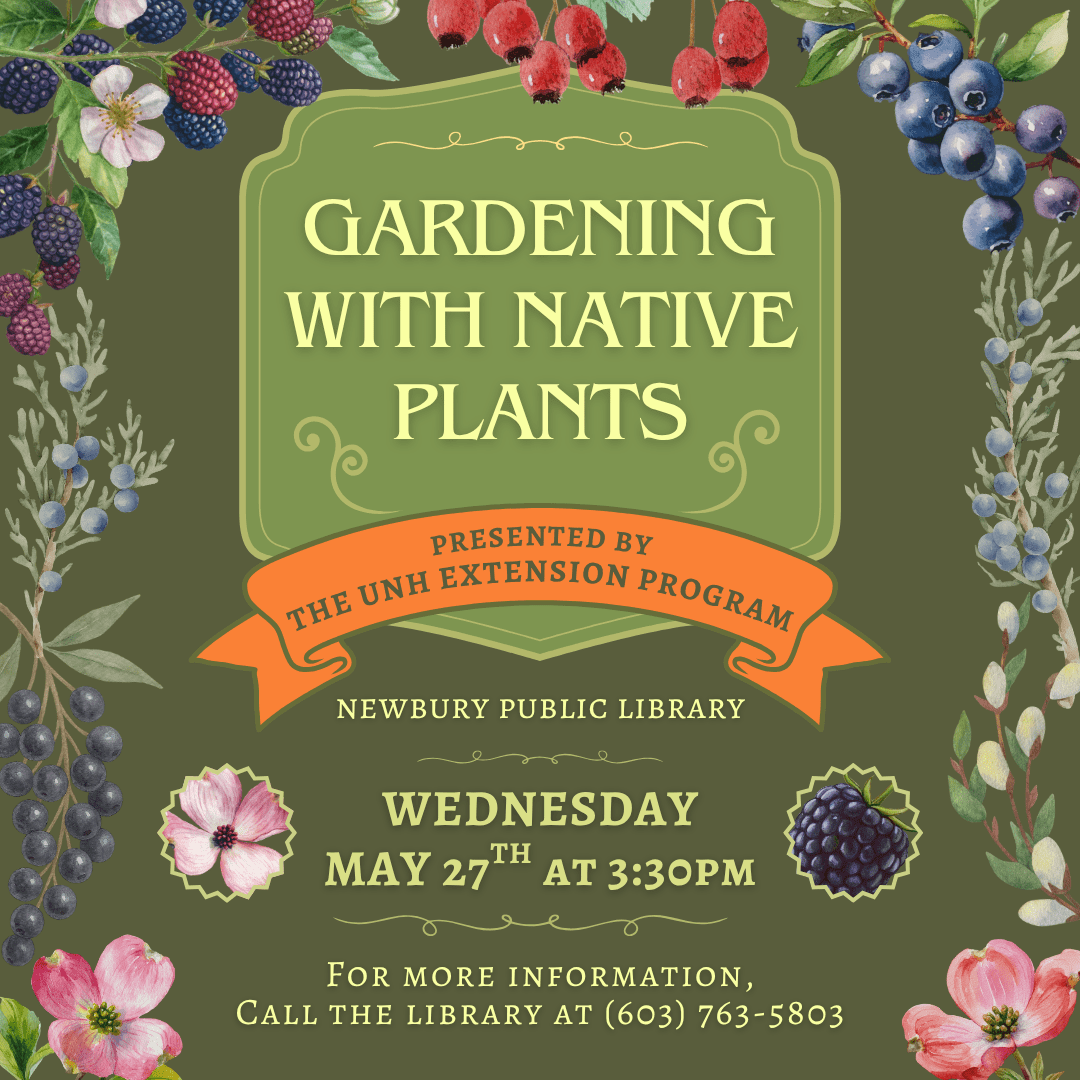 The UNH Extension Program is presenting this event to teach Newbury residents about which plants are native to this area and how to integrate these species into your own gardens. Come learn from a Master Gardener about what native plants are and why they are important to add to your landscapes. There will be example [...]