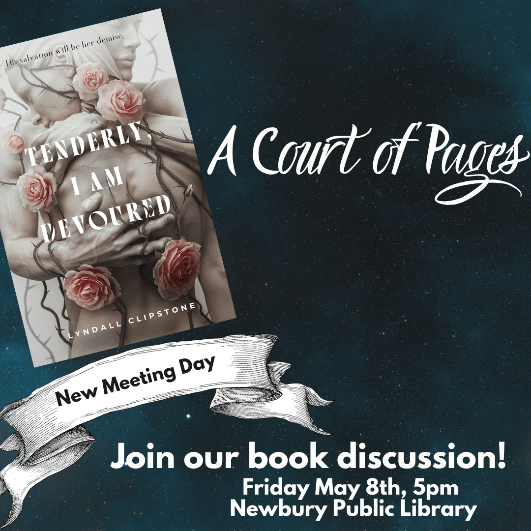 Court of Pages has a new date- Fridays at 5pm! Join us for book discussion and pick up copies of the book at the library! We are reading Tenderly I Am Devoured by Lyndall Clipstone. All are welcome!