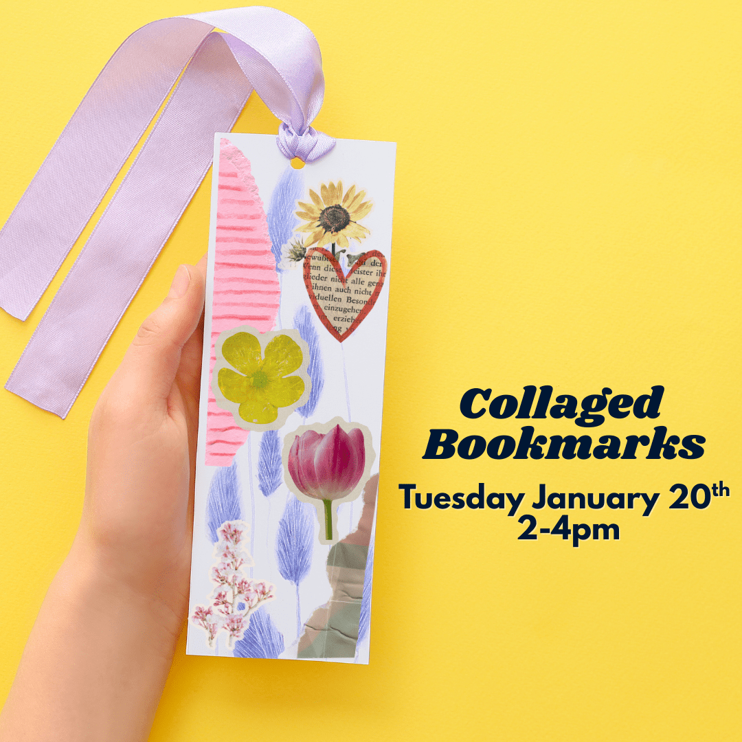 Join us to make easy collaged bookmarks! We will have all the supplies needed to make bookmarks for yourself and your friends! Free and open to all! Made possible by Friends of the Newbury Public Library