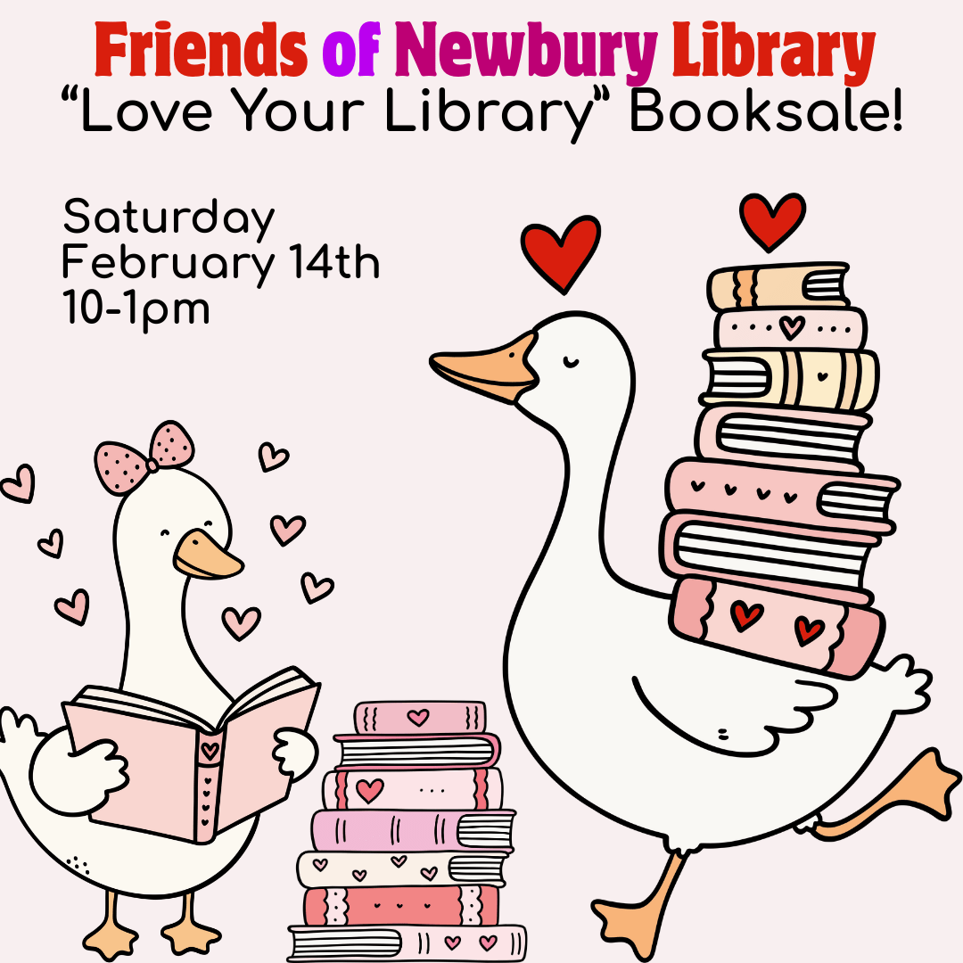 Join us at the library for our Valentines Day book sale! Grab a hot chocolate, pick up some new books, and make a craft at the library! Sponsored by the Friends of Newbury Public Library!