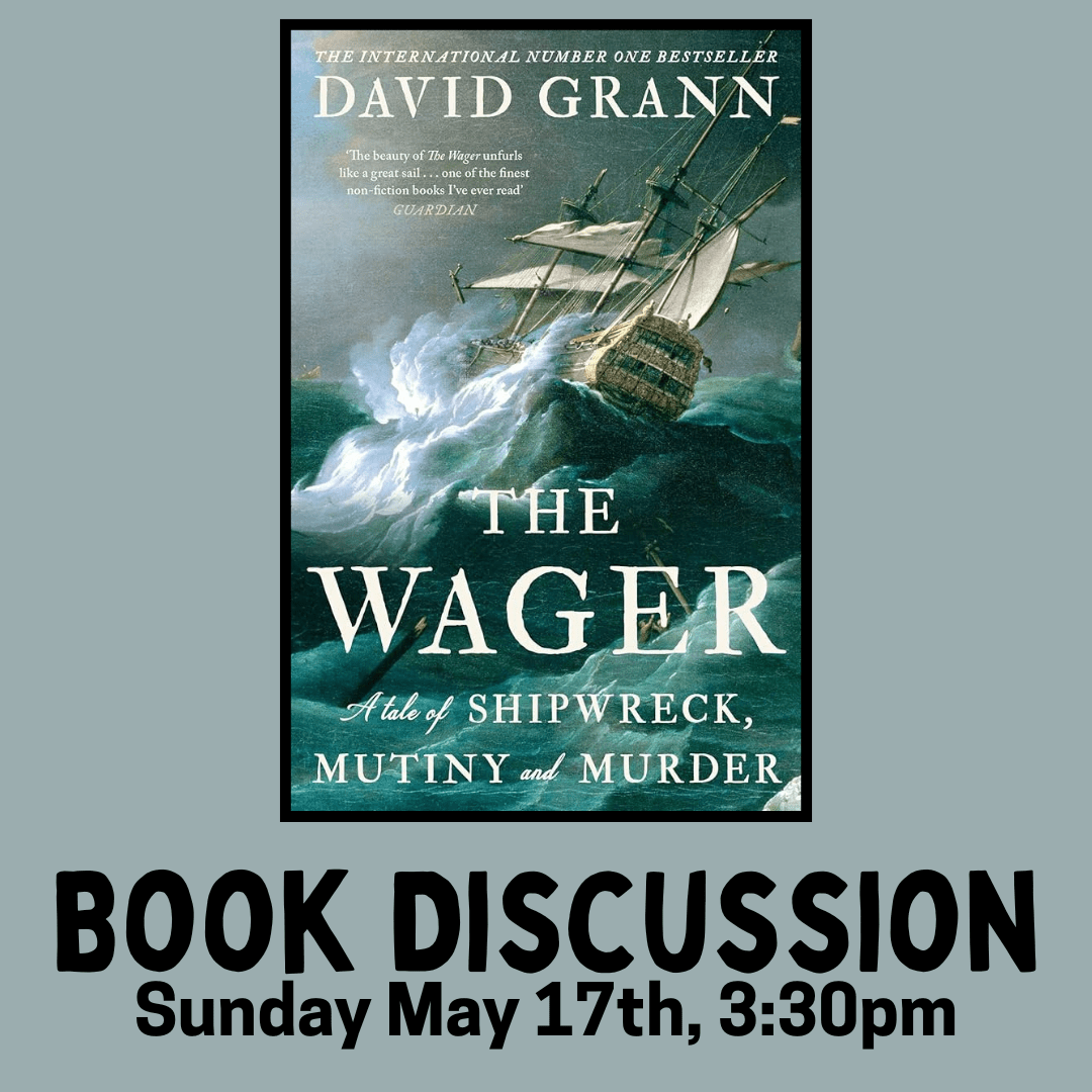 Sunday Book Discussion will be held on Sunday May 17th at 3:30pm and we will be discussion The Wager by David Grann. Copies will be available at the library for anyone interested in joining. All are welcome!